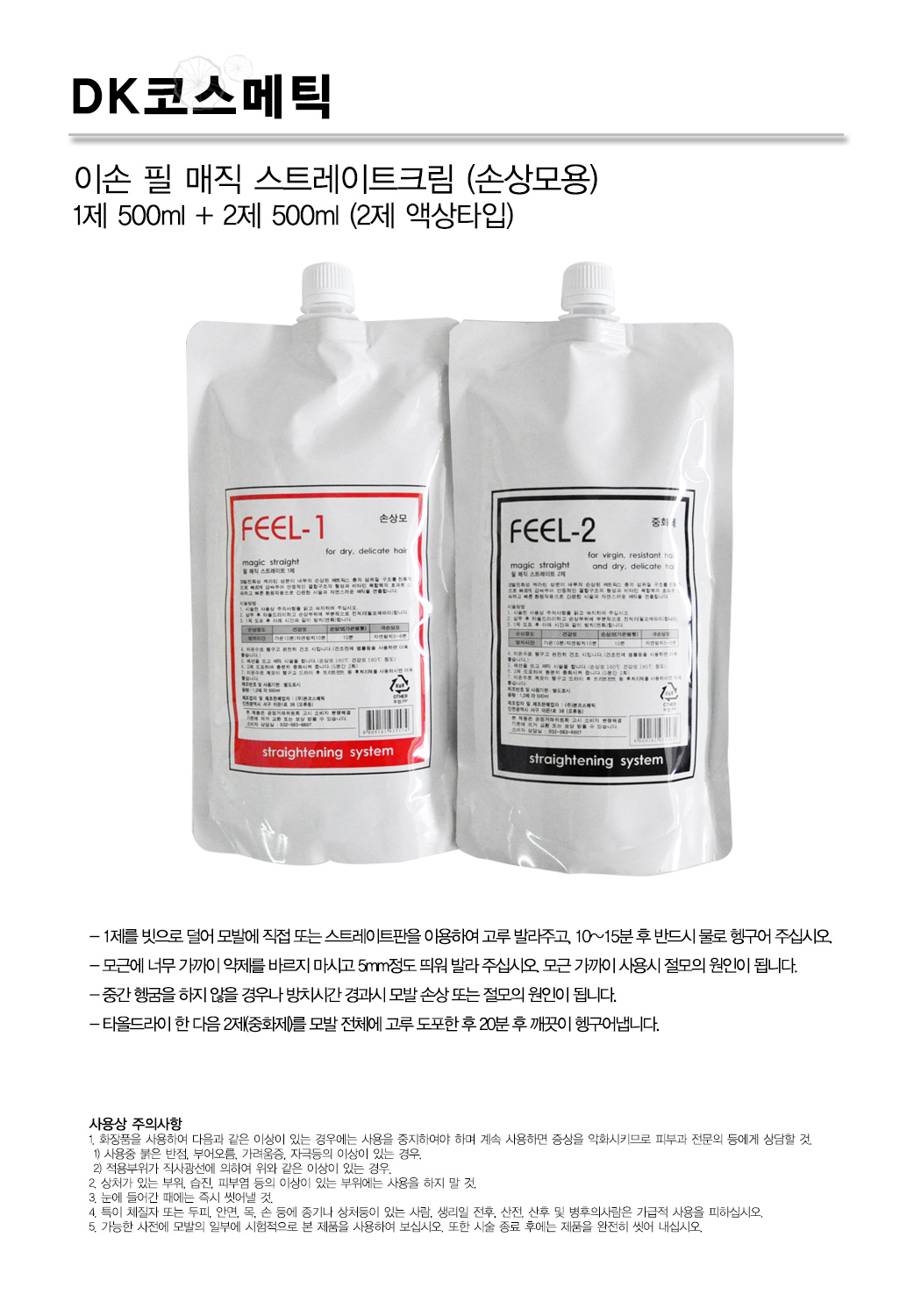 [DK COSMETIC] 이손 필 매직 스트레이트크림 (손상모용) 1제500ml+2제500ml